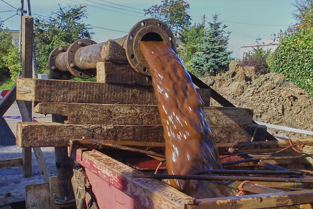 Osady są zbierane w zbiorniku sedymentacyjnym. Popłuczyny są pompowane do wskazanych odbiorników.